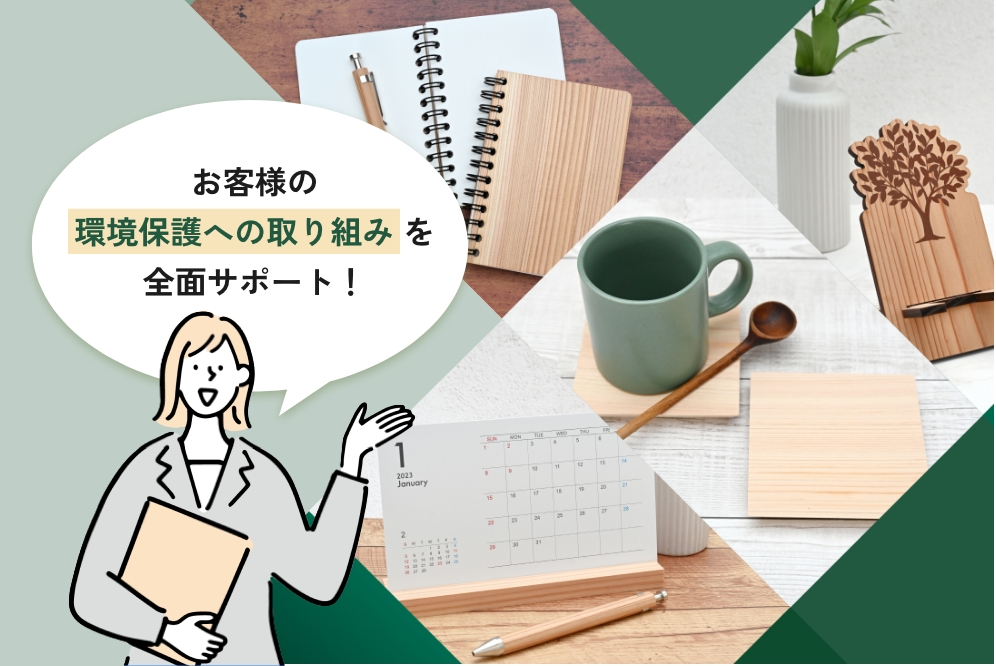 温室効果ガスの排出を削減する取り組みの一つである、カーボンオフセット。「環境への貢献をしたいが、何から始めればいいか分からない」そんな企業様のために、作るだけ・使うだけでSDGsアクションに繋がる木製ノベルティをご提案。最小ロット100個から対応可能です。企業のブランド価値を高める、具体的な環境貢献の証。貴社でも導入してみませんか?